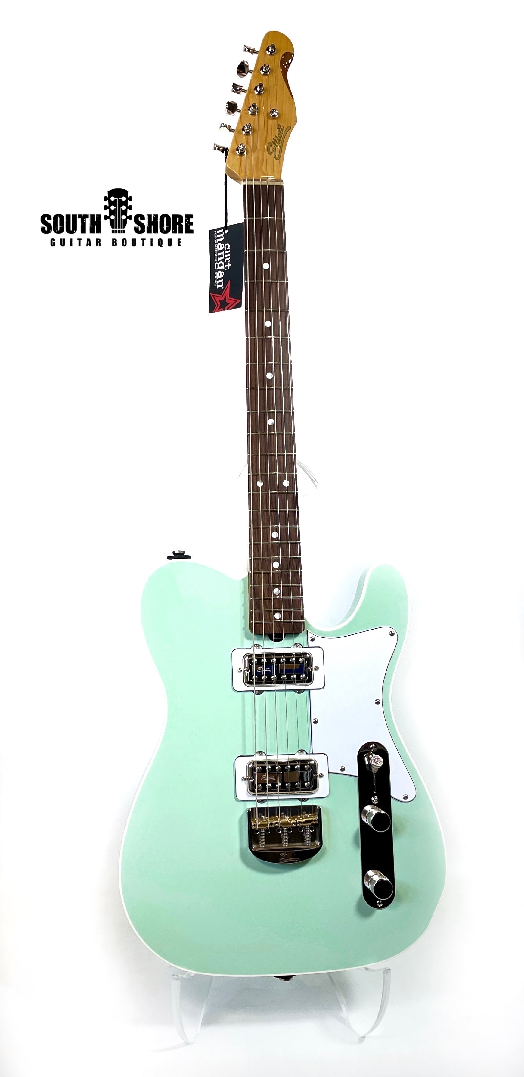 • Alder Body • Maple Neck • Med C Profile .85"-.95" • Indian Rosewood Fingerboard • Red Bullseye Side Dots, MOP Fingerboard Dot Inlays • 25 1/2" Scale • Nut Width 1 11/16" • Elliott Custom E-Tron Pickups (Filtertron Style) • Elliott Through Body Bridge • Surf Green Nitro Finish • Body Binding • Vol, Tone, 3-Way Toggle Switch • Thumbwheel Truss Rod Design • SKB HSC Included • 7lbs 8oz