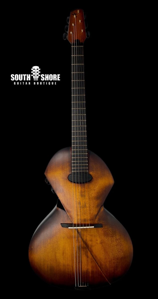 Before becoming the exquisite luthier that he is today, Adriano Sergio livedmany lives as a navy seal, furniture maker, professional bassist, and touringroad tech for many rock giants. Upon picking up one of his beautiful musicalcreations, you can feel Adriano's passion in each hand carved line and curve.The AÇORES has a definite artful and modern aesthetic, however Adriano'sapproach to instrument building is very "Old-World" in the truestsense. His preferred method of building is by starting from scratch with eachnew model. Making jigs and witling away with a knife and other hand-tools untilhe reaches perfection. Each new model is a limited build with only a smallnumber of pieces made. This particular example features a highly figured Alpine Maple top and Spanish Cedar sides and back.