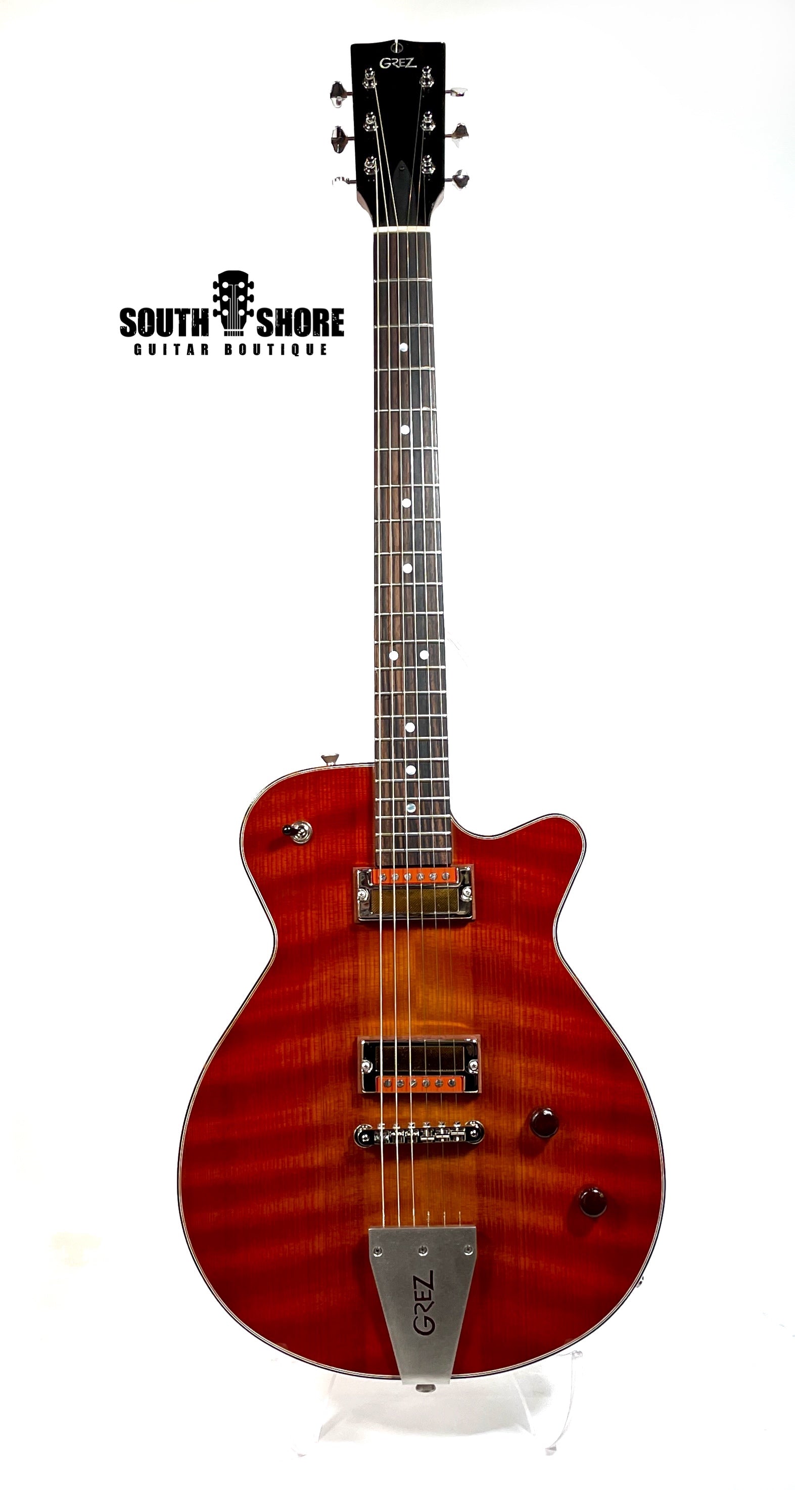 This Grez plays with ease and is currently setup with a set of 10-46 gauge strings. It has a sophisticated semi-hollow body voice with a loud acoustic foundation. A phenomenal guitar all around.