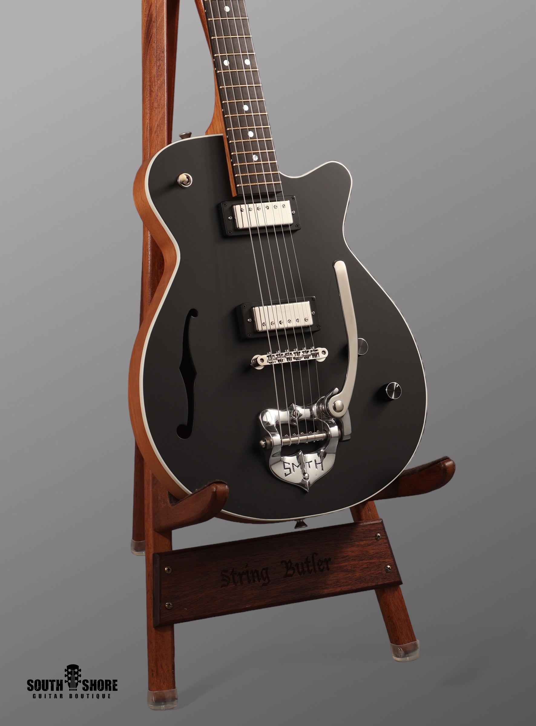 This Mendocino DCAF features a strait grained solid Old Growth Redwood top with a light burst finish and a one piece mahogany back and sides. The Lollar Imperial Humbuckers deliver a warm, present and focused tone with incredible dynamics and touch sensitivity. The light weight of 5lbs 4.3oz makes this an easy guitar to gig with, especially when standing for long periods of time. An absolutely great build with tons of versatility.