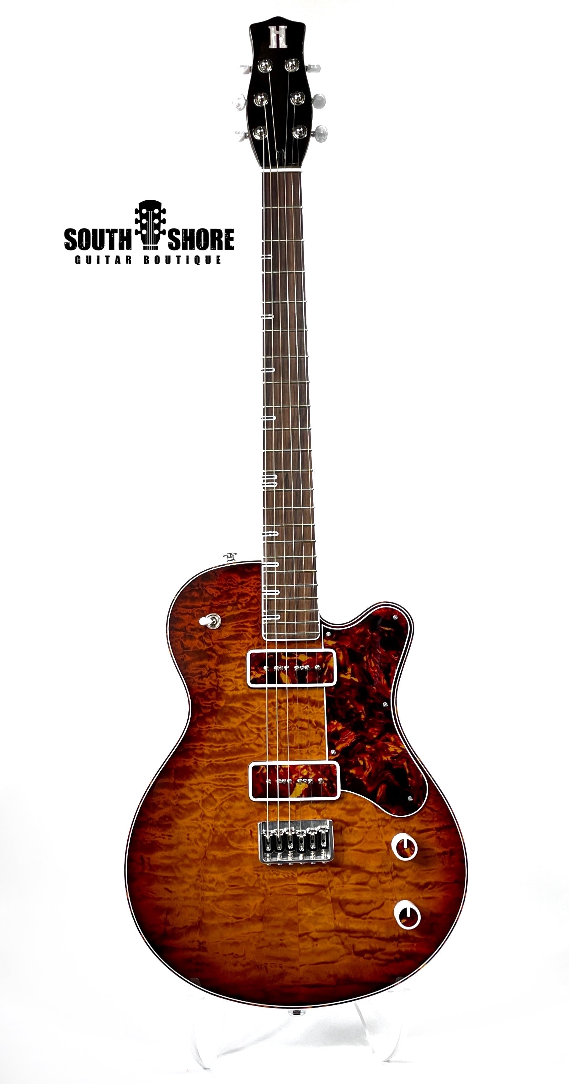 Body Appointments: Tortoise pickguard, P-90 covers, switch tip, strap buttons, knobs & headstock inlay