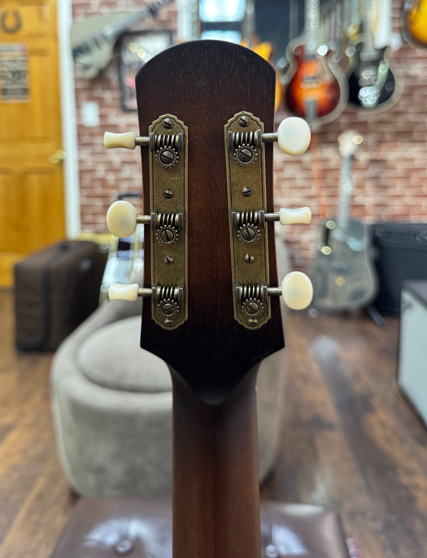 The DF model captures that dry, woody thump and projection of a classic slope-shouldered design but in a stripped-down, road-ready package. With its Tortoise binding and Firestripe guard, it’s got just the right amount of vintage flair. A comfortable 1-3/4” nut and 2-5/16” bridge spacing make it ideal for fingerstyle or flatpicking alike.