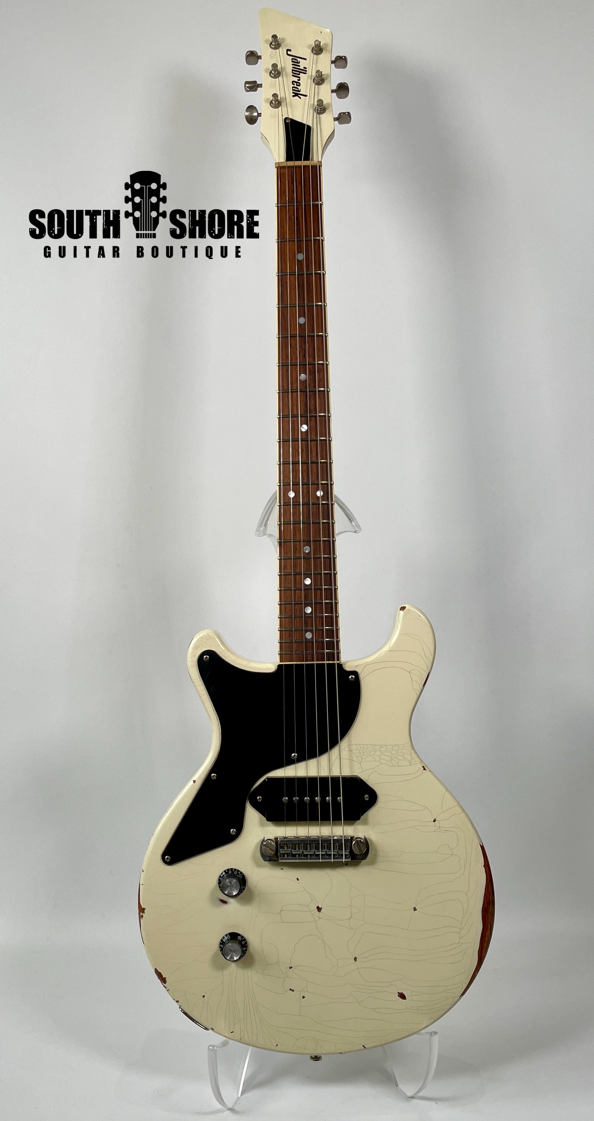 The guys at Jailbreak guitars in Italy were kind enough to send us two sample guitars to check out. They're a great value and especially at this price point. This is a LP. JR style instrument with two handwound pickups and a comfortable med-chunky C profile neck. The pickups sound great and there is hardly any sign of usage, except for some very light scratches to the backs lightly applied nitro finish. Comes in HSC.