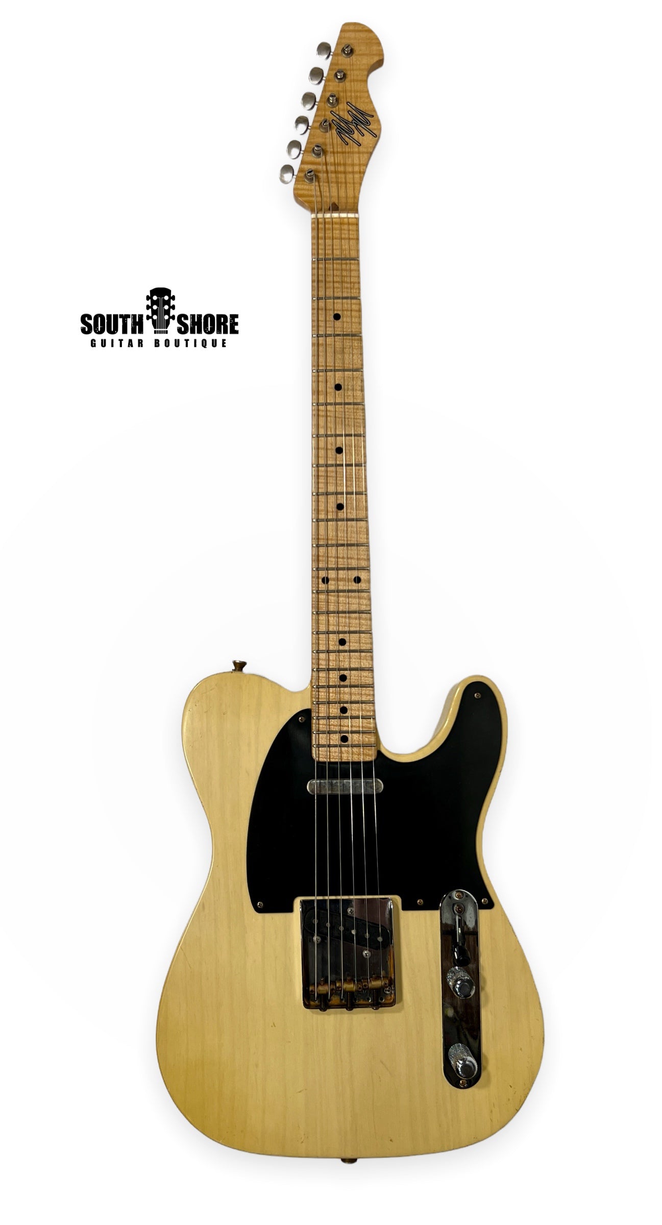 The Mastery Bridge and Vibrato work effortlessly together. These units have a smooth feel with an arm that pops in and out, for ease of travelling with the guitar in it's case. The finish of this Mario is unlike any Lake Placid Blue we've seen. The extra hints of metallic sparkle, gives the finish more depth than a standard LPB finish. Plastic and metal parts have been aged by Mario Guitars in house. It's the small details like the yellowed pickguard and truly worn-in feeling nitro finish on the neck, that pull this whole guitar together. Players of all genres will find something to love about it. There are many demos on YouTube of the Mojo Dual Foil Pickup. You can expect a quiet lower output humbucker with an airiness around the notes. The bridge pickup is warm, open and twangy while the neck is more mellow and great for anything from Jazz to Rock, depending on the amplifier and other gear used. These pups also love overdrive for a great raunchy Blues tone.