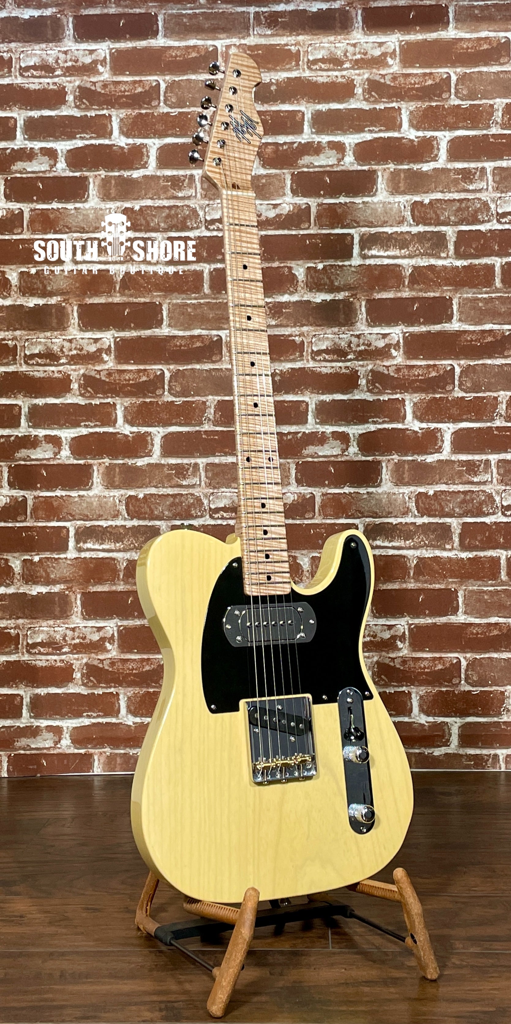 A classy double bound, slab-board Tele by Mario Guitars in Nashville Tennessee. This build features an Alder body and has a great singing mid-range inherent in Tele's built out of this tone-wood. The Budz pickups deliver classic Tele bite and versatility. This guitar features an upgraded Madagascar Rosewood fingerboard, which looks very much like the Brazillian RW you'd find on a early 60's Tele. An all around wonderful and well-balanced guitar by one of the finest boutique "F-Style" instrument makers around.