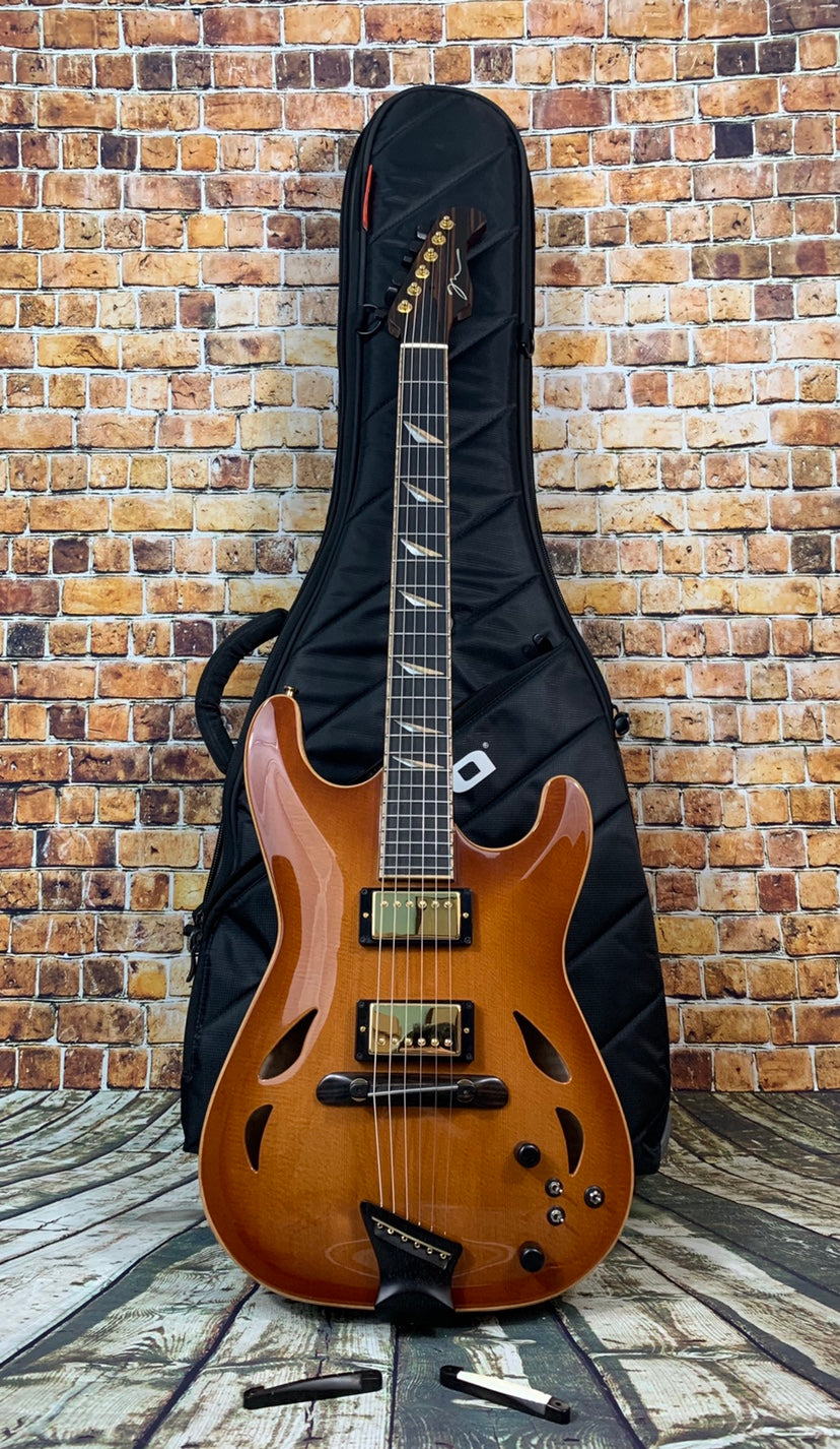 Cristian Mirabella is most well known for his fully carved archtops like his Crossfire model, as well as restorations of many fine vintage instrument masterpieces by names such as D'Angelico & D'Aquisto. However he has also built many unique one of a kind guitars such as this beautifully crafted Semi-Hollow body, utilizing the same level of attention to detail as his more expensive Archtops.