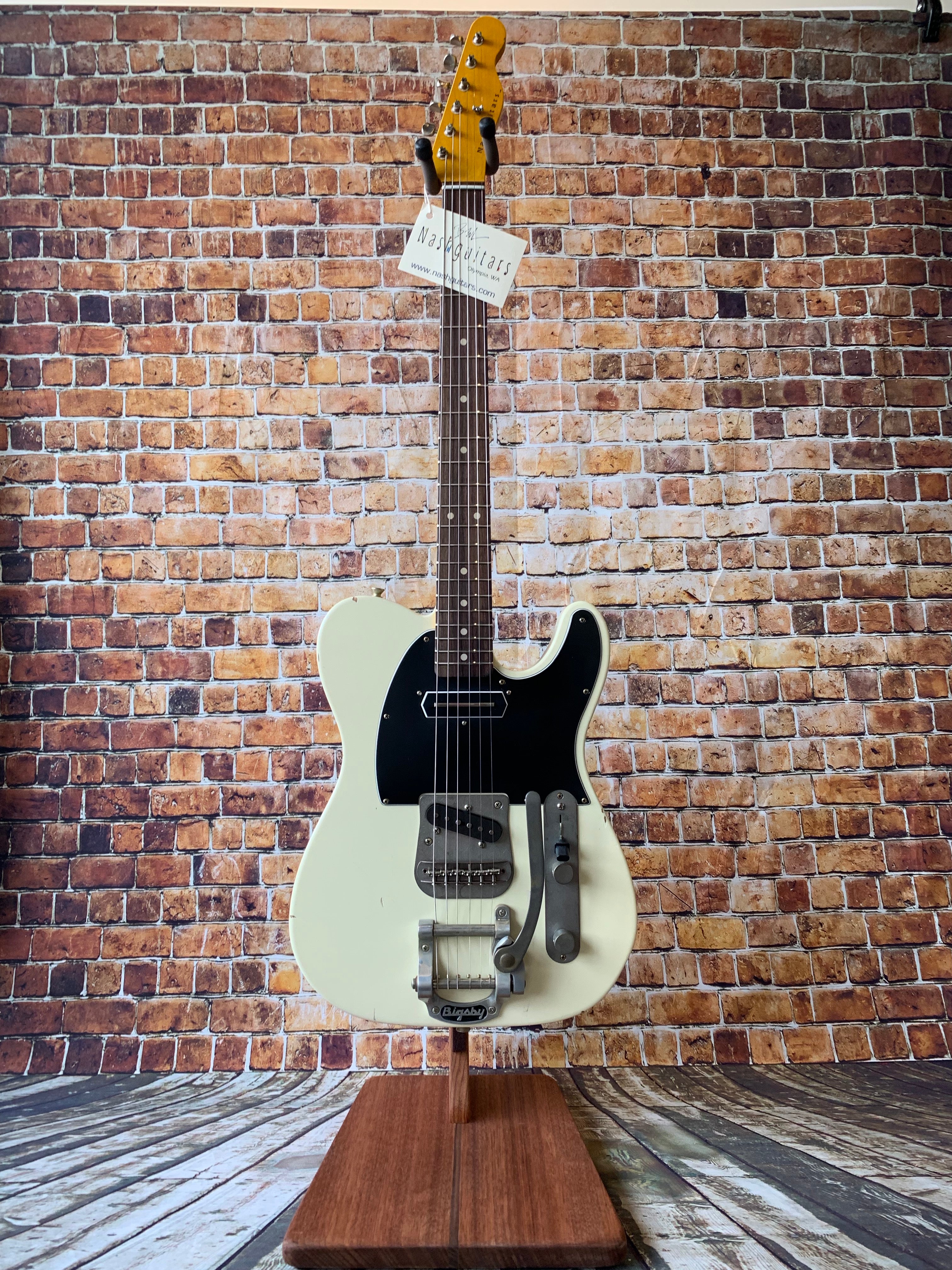 Body: Alder Finish: Olympic White Nitro Neck: Maple Fingerboard: Rosewood Profile: Med C .83"-.94" Scale: 25 1/2" Pickups: Lollar Vintage T Guard: Mint 3 Ply Weight: 7lbs 6.9oz Nash Alligator HSC