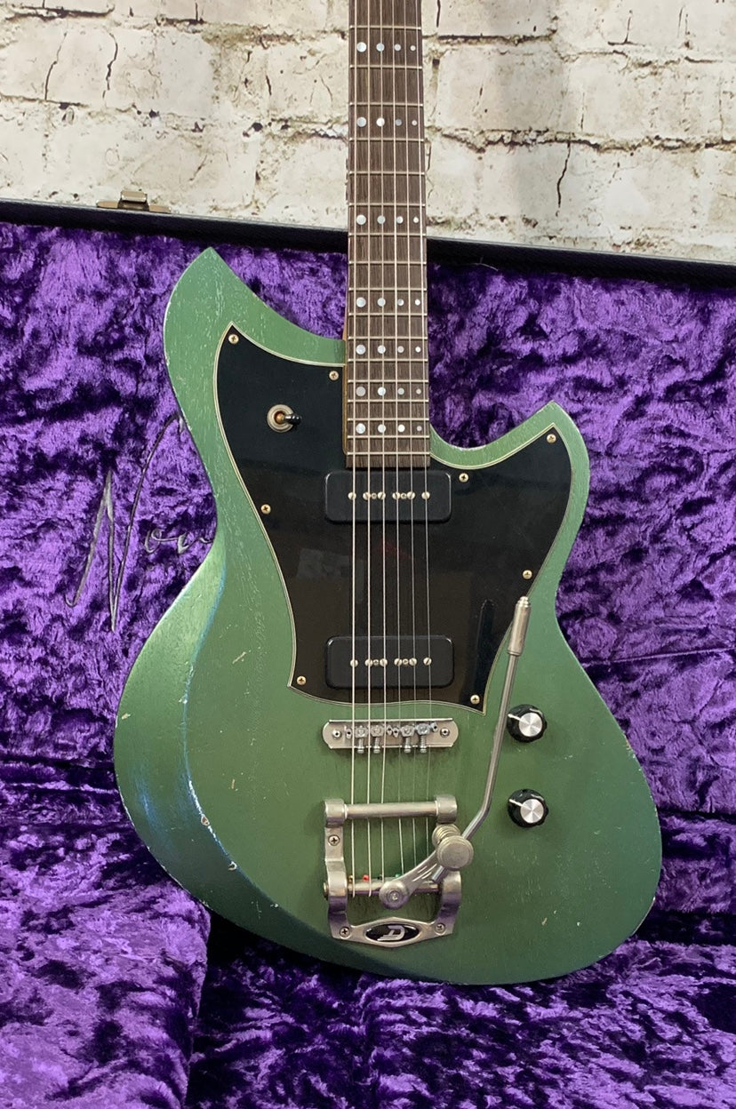A pair of Fralin Hum-Cancelling Alnico P-90s provide all the clarity, midrange bite, and dynamic punch you’d expect, without the noise. Hardware is top-tier, with a Mastery M1 bridge and NV vibrato for rock-solid tuning and expressive bends. Finished with nickel covers, polished aluminum pickguard, and black Dumble-style knobs, this Miris J is equal parts elegance and grit. Includes a Novo deluxe padded soft case.