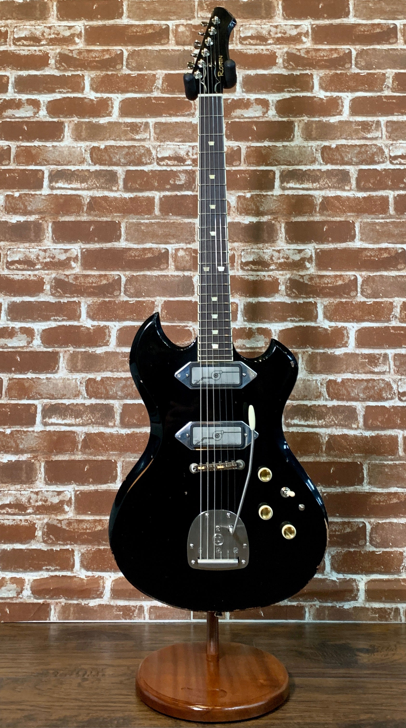 This is a rather rare Ronin guitar from 2013, that has recently been gone over from top to bottom by head Ronin Luthier Izzy Lugo. It  was setup with 10's and plays like butter. The Songbird never got quite as much fame as the Mirari or Morningstar, but the build quality is just as high on this model as any other Ronin. There were only a handful of Songbirds built out of Redwood with Ronin Gold Foil Pickups. This is one of them. You can think of this model as a cross between the Mirari and the Stormcrow. The body shape is based on the Mirari with some extra curves and SG or Stormcrow like horns. This one has a great chunky neck with Single Foil Pickups. It twangs like a Tele, but has the clarity and dynamic range Ronin is known for. The Single Foil is a special Gold Foil pickup, with lots of bite and warmth both at the same time. Clean or dirty this guitar just sounds great. Extremely comfortable and easy to play. If you are looking for a unique Ronin model, this Songbird is certainly a guitar worth checking out. This instrument is clean with some, but very minimal wear to the finish.