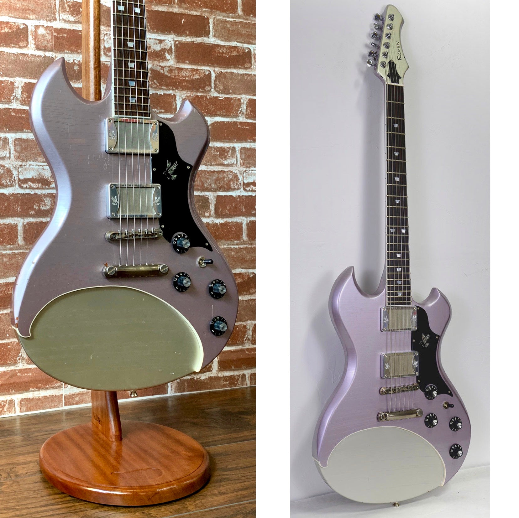 The Stormcrow is a set-neck 24 3/4” scale guitar by Ronin and is as rare as they come. This one in particular is truly one of a kind and it breaths fire.Â