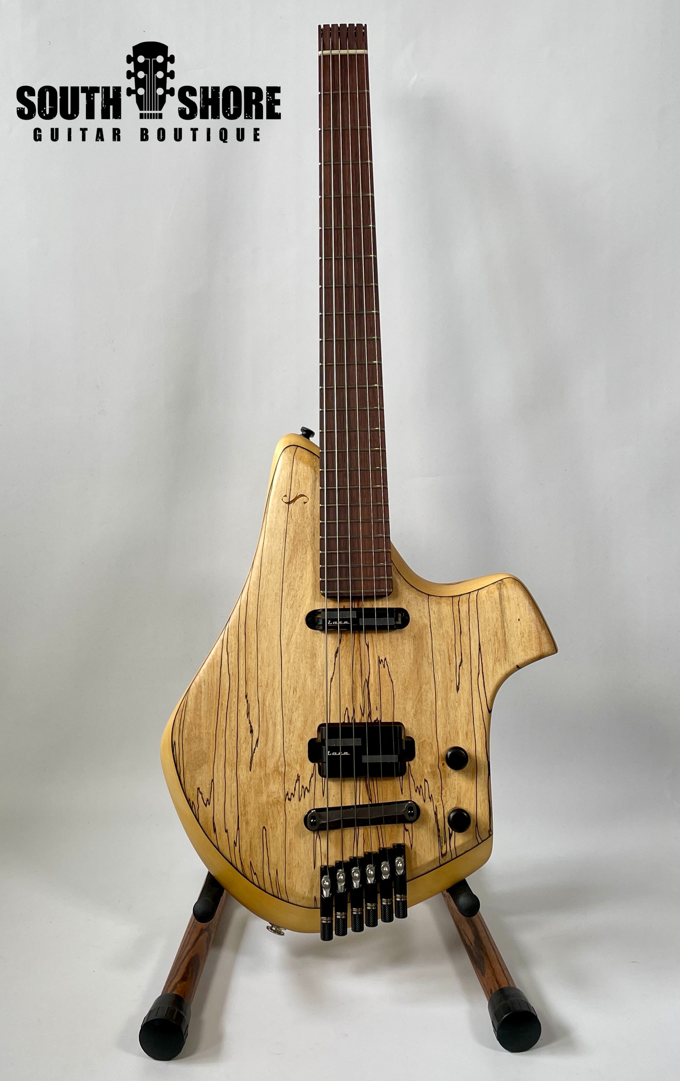 resonant Master Grade Old growth Redwood body and a White Limba set-neck. Another unique feature to this master Luthier built instrument is the six in a row headstock that has a clear finish over it, so you can see the White Limba wood in all its grey and white striped glory. The Stormcrow STD usually features a three plus three headstock.