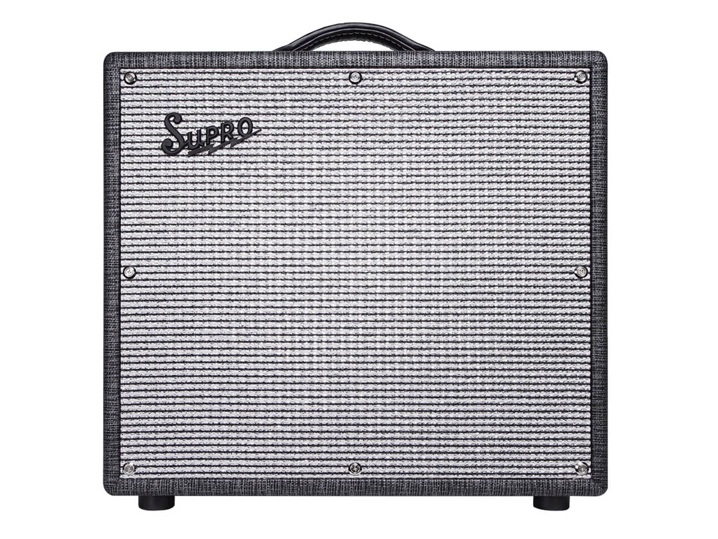 he Supro Blues King 12 combo amplifier captures the vintage Supro amp tone that helped sculpt the sound of early electric Rock & Roll and the British Invasion of the 1960s. The “single-ended” Class-A tube power amp found in the Blues King provides the raw tonal characteristics and remarkable touch sensitivity of these mid-century combos, while delivering a full 15 watts of 6L6 tube power. Front-end gain in the Blues King is supplied by a 12AX7 tube preamp and a FET-driven, fat boost function. In addition, the amp’s high-gain mode uses a series of cascaded FETs to achieve face-melting levels of distortion and sustain. 3-band EQ and Master Volume controls join the footswitchable boost and gain functions to provide multiple layers of stackable overdrive for gigging, recording and home practice. The 1812R Blues King features a custom-made genuine analog spring reverb, plus an effects loop for pedals and a line output for recording or feeding to another amplifier. The vintage-inspired poplar wood cabinetry is based on the mid-50’s Comet model and comes loaded with a BK12 speaker. This custom-made, 12” driver was specifically designed to capture the magic of the original field-coil speakers used in American tube amps at the dawn of the electric era. FEATURES: