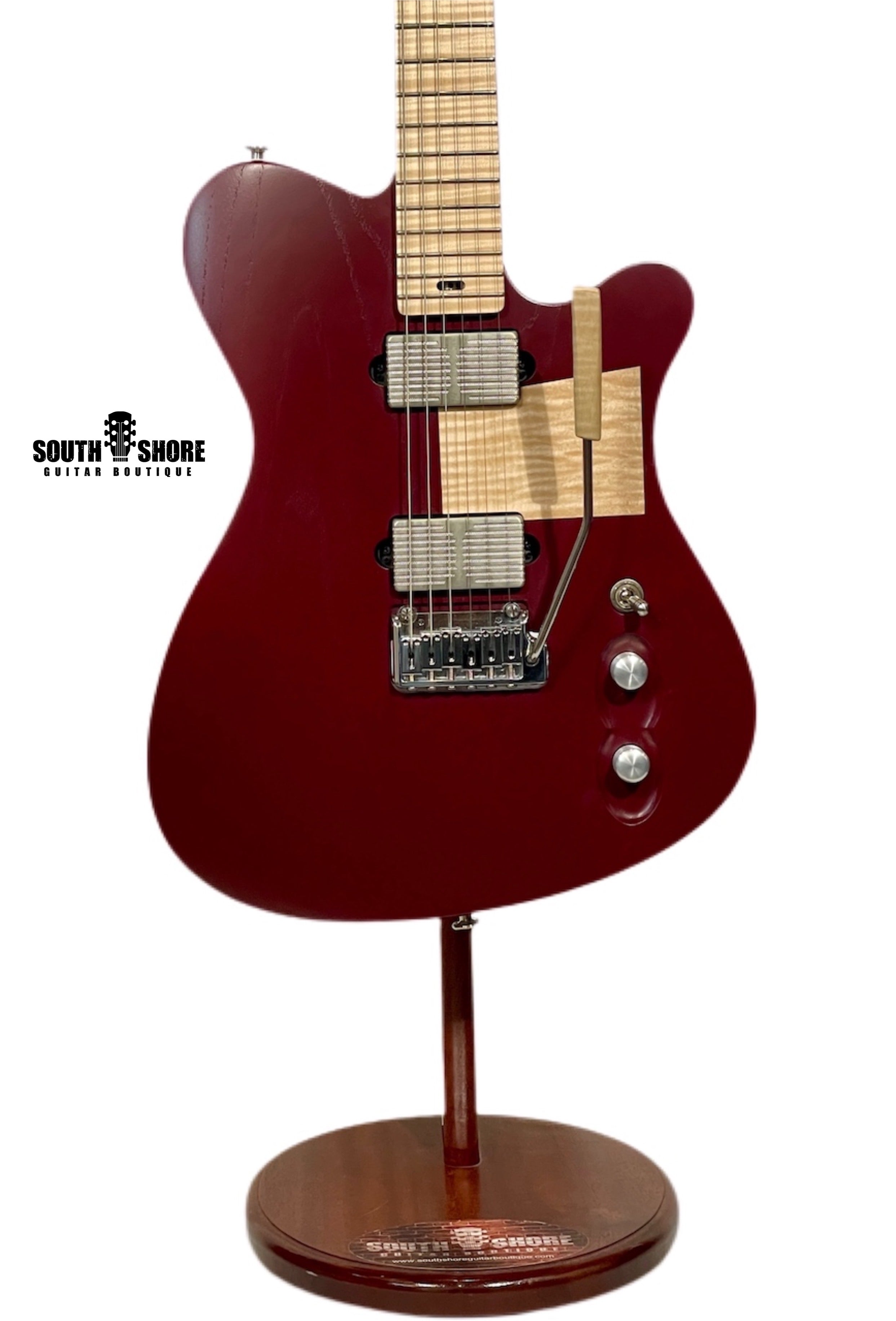 The body shape is certainly a nod to Leo Fenders Telecaster, but with a slightly offset end section and lots of unique contours and curves for comfort. The treble side cutaway is also deeper, allowing easy access across the entire length of the fingerboard. The Mastery Vibrato works outstandingly well. It is a joy to use and extremely responsive to your touch. You can achieve anything from dive-bombs, little flutters or full on aggressive whammy tricks. Playing behind the bridge is another fun and musical aspect of an "Offset Style" Vibrato, such as the Mastery.