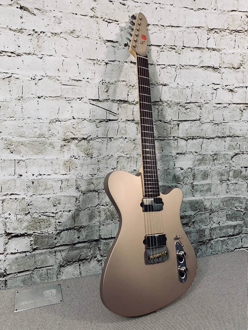 The T-Bucket is Tao's nod to Leo Fender's Telecaster model, but with a shorter 24 3/4" Gibson scale length. The body is built out of light weight Spanish Cedar with a beautifully shaped inlaid pick-guard made of Indian Rosewood on the treble side of the body. The neck is Quartersawn Flame Maple for extreme, duribility, sustain and resonance. Speaking of resonance this guitar does not stop ringing. It blooms unplugged like only some of the finest acoustic guitars we've ever played do. However it's a light weight insrument. The entire guitar only weights 5lbs 14.5oz. This is one of the very first Tao guitars to come to the United States fitted with an ABM 2-pin Vibrato, that has a fully routed out cavity. This allows the player to not only be able to push downward but also pull notes up a full minor third.