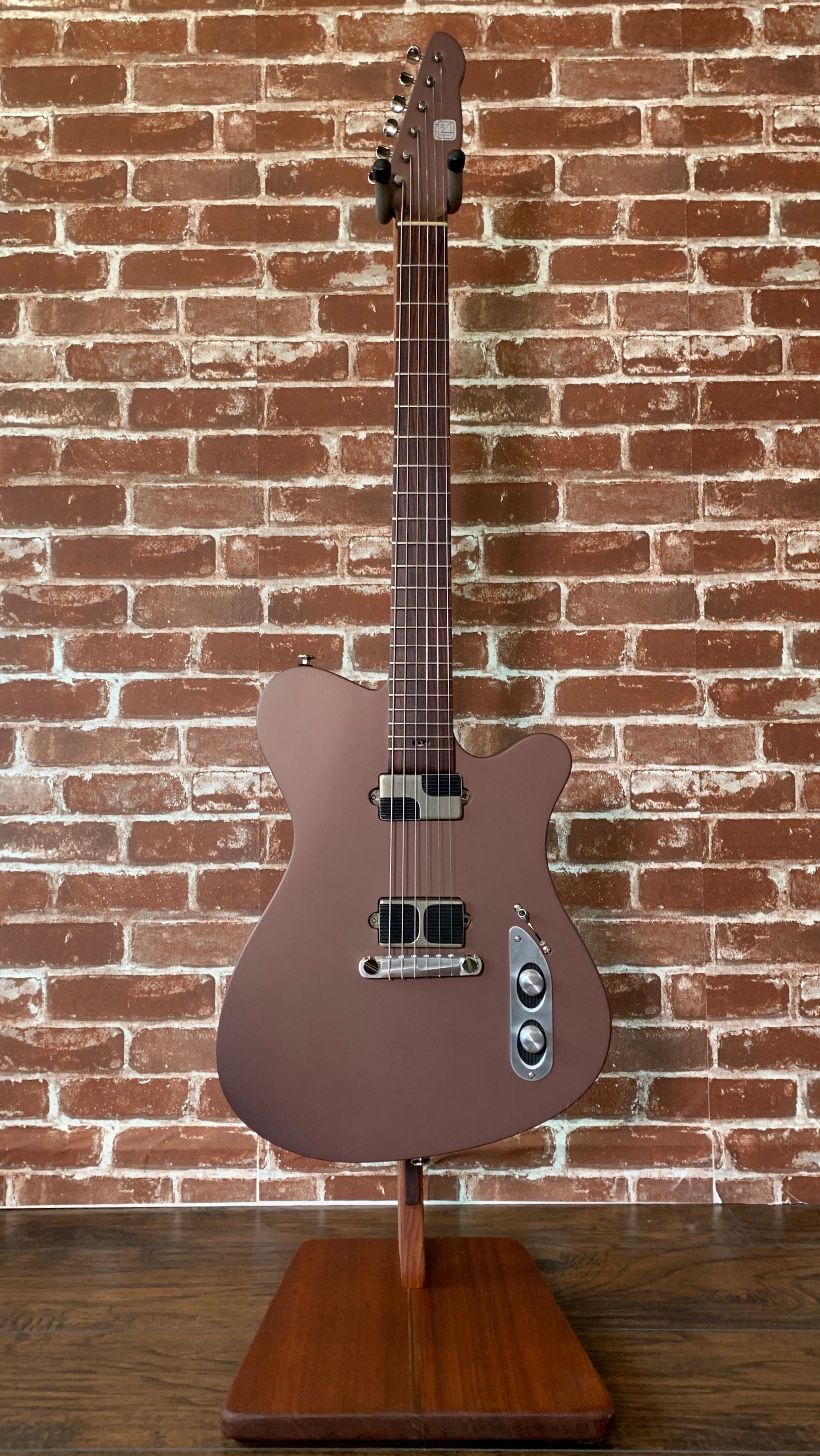 The scale length is 24 3/4” which will feel very comfortable as familiar to fans of Gibson electrics.The pickups are a set of extremely special Custom-Wound for Tao, Stephen Designs Z-Max Neck Pickup and a V-1 61 bridge pickup. Both of these pickups have Tao’s unique handmade covers which are inspired by the world of hot-rods & classic cars. The Tao Boyz are also very talented Machinists as they hand-build & fabricate mostly all of their own hardware. The Bridge on this guitar was a Glendale’s (included) but is now changed to a Mastery Cut-Tele bridge with both string through the body & top-loading options for even more versatility. Tao has begun using Mastery Bridges/Vibratos on some of their newest builds and it compliments the guitar both in feel & looks very well.