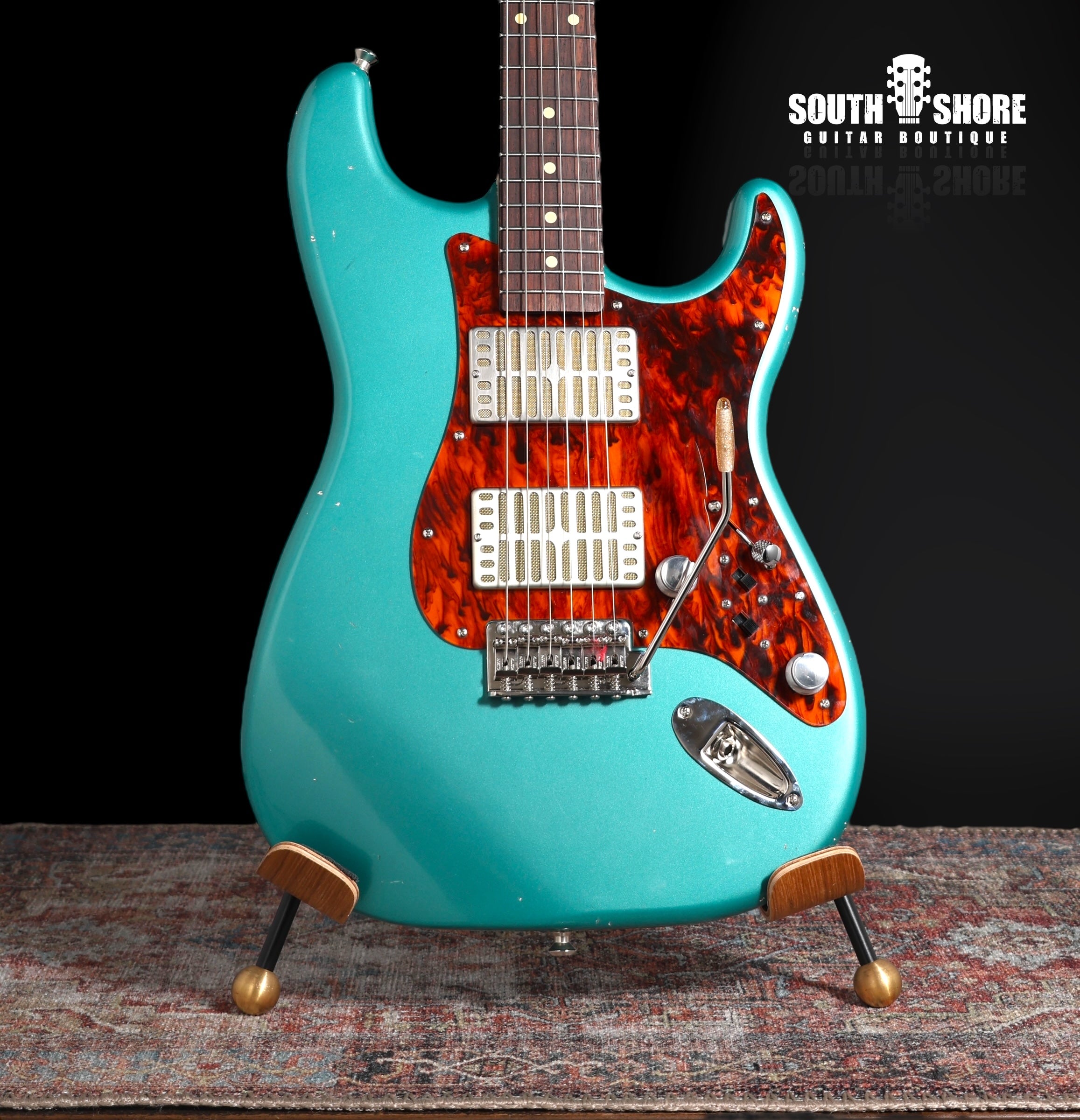 Here’s a gorgeous sounding and more than esthetically pleasing T-Style Coodercaster by Waterslide Guitars. From the large and comfortable Boat-neck profile with a “Snake-Head” headstock (seen on very early Fender Tele/Esquire Prototypes of the late 1940’s) and hand wound Mojo UK pickups, this guitar came out incredibly. It’s an inspiring and lightweight instrument with high attention to detail and playability given. This is one of the first Snake Head Waterslide T-Styles to be built. The Lap-steel style bridge pickup lends itself to many musical styles. It Twangs like a Tele with a slightly more scooped midrange for crystal clear clarity when clean and it becomes tremendously dynamic when overdriven. While most players with this bridge pickup may favor playing with a slide, you can still palm mute, though it takes some getting used to. I’ve demonstrated this on our Instagram page South Shore Guitar Boutique in the past as has Pat from Waterslide Guitars. When you get used to the pickup layout, it’s a truly unique instrument to develop your own voice on. Tone and Volume pots are in perfect reach for tone/volume pinky swells (think Roy Buchanan/Danny Gatton type tones) The neck pickup is a warm and almost ethereal sounding Gold-Foil that seems to respond to pick attack and overdriven tones great while still able to get nice and Jazzy depending where you set the tone control. All in all we just love these Lap Steel pickup equipped Waterslides. While in Nashville for NAMM we encountered many, many players that were using Coodercasters with this pickup-configuration as their main guitars.