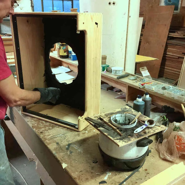 I began by digging deep into basic research, leaving behind the work I had done with Tone King and starting fresh. The new designs were to be purist in nature – simple, all tube, handwired, and driven by the natural acoustic properties of finely tuned solid wood cabinets.  I focused on creating a genuinely natural sonic presentation, like an acoustic instrument, in which every note is full and resonant, rich with color and consonant harmonics, and free from glare and constriction.   Â