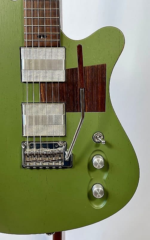 All in all between the finish work where you can feel and see the wood grain, the versatile and incredible/unique pickups, lightweight balanced feel (seated and/or standing) and the inspiring fully routed out vibrato cavity, this guitar is one of our favorites to have ever come through the stote. The guitar is in great condition w/ only a few scratches and finish wear to the edges of the body. We think it gives the guitar even more charachrer. Keep in mind the finish is applied the lightest Tao possibly can achieve, in order to let the guitar freely resonant. Some light wear to the hardware is also visible upon close inspection. This is all to be expected from a four year old instrument that has been lovingly played. The guitar was recently setup and plays easy with a low action and minimal relief in the neck. It's truly a joy of a guitar to play.